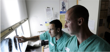 An x-ray is an imaging technique that uses small amounts of ionizing radiation to produce images of the bones and tissues of the body onto a film. The image is created due to the X-ray beam being absorbed differently by different structures or parts in the body. A dense structure like bone absorbs a high percentage of the X-ray beam – which appears light grey on the image. Low density structures like soft tissues absorb a small percentage – which appears dark grey on the image (O’Sullivan and Goergen, 2009). X-rays pass through body tissues onto specially treated plates (similar to camera film) and a “negative” type picture is made (the more solid a structure is, the whiter it appears on the film). X-rays are often created digitally now for analysis on computers rather than x-ray film. X-rays are one of the oldest and most frequently used forms of medical imaging in modern medicine. The chest x-ray is usually an image viewed from the back to the front of the body and sometimes from the side.